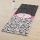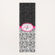 Modern black and white floral damask pattern and hot pink stripes. Optional monogram