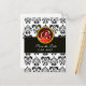BLACK AND WHITE DAMASK RED RUBY MONOGRAM ANNOUNCEMENT POSTCARD