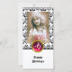 BLACK AND WHITE DAMASK Red Ruby Monogram Holiday Card