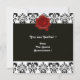 BLACK AND WHITE DAMASK, RED WAX SEAL MONOGRAM, INVITATION