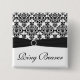 This black and white damask with faux ribbon and jewels Ring Bearer button matches the wedding invitation show below. The text is customisable and so is the shape and size of the button. If you need anything changed, please email niteowlstudio@gmail.com.