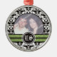 Black and white damask wedding photo ornament featuring your precious photo framed in black and white damask pattern black and green bands and your initials in a circle.
