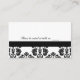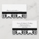 Customise this pretty black and white damask wedding table place card with a black ribbon design. Personalise it with the bride and groom's name and a special message on the back. Design © Chrissy H. Studios, LLC. All Rights Reserved.