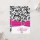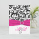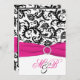 Black and White Damask with Fuchsia Faux Ribbon Invitation