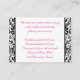 This black and white damask reception enclosure card with FAUX hot pink ribbon matches the wedding invitation shown below. You could also customise it to be a map or directions card by changing the text accordingly. If there are any other matching items you require, please email your request to niteowlstudio@gmail.com.