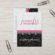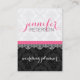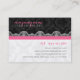 Elegant black and white vintage damasks and lace with monogram and touch of pink. Wedding planner business cart template.
