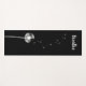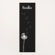 A bright white dandelion with blowing seeds and the word, Breathe, written in a fancy script decorate this yoga mat on a black background, making it perfect to relax on at your next class.