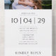 An elegant black and white minimalist all in one wedding invitation featuring your photo, special date and wedding details set in classic, chic typography. The invitation includes a perforated RSVP card that’s can be individually addressed or left blank for you to handwrite your guest's address details. Designed by Thisisnotme©