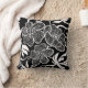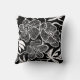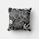 Black and white throw pillow with a floral design. Made in the United States. Large cotton pillow with a flower pattern.