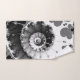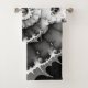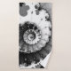 A deep, contrasting black and white fractal spiral swirl design covers these comfy, soft bath towels