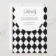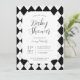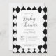 Classic, timeless black and white argyle baby show invitation. Customizable font styles and layout, featuring a simple patterned backdrop with clean, geometric diamond shapes. Perfect for unisex baby shower invites, baby boy shower invites, and preppy baby shower invites.