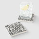Black and White Diamond Check Flower Pattern Stone Coaster