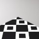 A bold, graphic pattern of interlocking black and white diamond shapes. The white diamonds each contain a small black diamond making black the dominant colour of the original design.