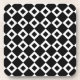 A bold, graphic pattern of interlocking black and white diamond shapes. The white diamonds each contain a small black diamond making black the dominant colour of the original design.