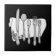 A set of simple silverware on a pretty napkin in black and white. Click Customise It to add your name or message to this restaurant design, change background colours and more.
