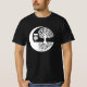 Disc golf themed t-shirt. Black and white disc golf basket and tree roots silhouette.