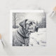 Cute black and white Labrador retriever black and white ai picture with a winter scene. Snow and trees in the background.
