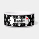 White dog paw prints and hearts pattern with a custom black background colour on dog food and water bowls. This pattern can be easily enlarged or reduced to your preference and pick your favourite background colour. Personalise this dish with your dog's name printed on the white dog bone accented with a red heart. Cute gift idea for any dog parent!