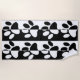 A black and white pattern with dog paws and stripes. Custom beach towels.