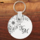 Black and White Doodle Flowers Colour In Picture Key Ring