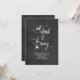 Cute black and white Halloween party invitations that have a cool typography design that says Eat, Drink and Be Scary with a spooky spider on a chalkboard look background.