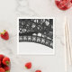 Napkins featuring an original black and white photograph of the Eiffel Tower arch detail in Paris, France.