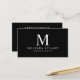 A black and white modern elegant stylish design featuring monogram and your information in white professional font style on black background.