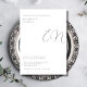 the front design shows a unique elegant classic wedding invitation in black calligraphy and typography with white background.