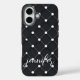 This customisable iPhone 16 case provide an elegant and luxurious look for those who care about their image. It offers a black and white dotted pattern dominated. Just change the text with your friend's name and create the perfect gift for your friend.