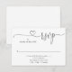 A simple elegant black and white script heart kindly reply RSVP card with your details set in chic typography. Designed by Thisisnotme©