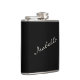 Black and White Elegant Script Name Wedding Party Hip Flask