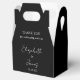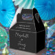 This black and white minimalist elegant script wedding favour box can be personalised with your information in chic typography. Designed by Thisisnotme©