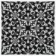 Elegant fabric design featuring a seamless pattern made of white ornaments on black background.