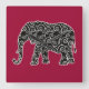 Clock with an elephant designed with a black and white swirl design on a bright red background.
