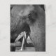 A black and white elephant photo postcard. Photo was taken in Cambodia, on a farm rescuing elephants that had previously been mistreated by their owners.