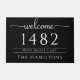 Charming and classic custom doormat features "welcome" in elegant script paired with your family’s last name, address and house number. Designed with clean stripe accents, this doormat offers a timeless look that can be personalised to match your entryway.