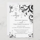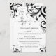 This festive "the wedding of" wedding invitation includes all the information you need to send your guests. Include wedding details on front, and include reception, hotel, travel, website and rsvp information on back, including a qr code link to your wedding website. Festive and fanciful black and white swirl design wedding invitation printed cards. Decorative swirls with leaves and roses, and beautiful fonts with swirl ligatures. Simple, modern and classic clean wedding invitation, with your custom wedding details and further information on the back side of the card.