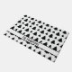 Destei's original pattern of simple black Christmas fir tree silhouettes on a white background colour. There is also a personalizable text area for a name or other custom text. This design was created with the modern minimalist aesthetic in mind.