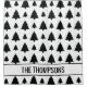 Destei's original pattern of simple black Christmas fir tree silhouettes on a white background colour. There is also a personalizable text area for a name or other custom text. This design was created with the modern minimalist aesthetic in mind.