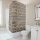 Black and white five stripe pattern with tan shower curtain
