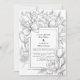 A refined monochrome floral design featuring hand-drawn peonies, roses, and a graceful ribbon framing the text. The detailed linework and architectural background give this piece a sophisticated, timeless look — ideal for elegant, classic, or modern black-and-white weddings.