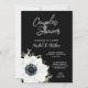 Elegant black and white anemone flower and leaves on a black background is perfect for a couples wedding shower invite, bridal shower invitations or any special event, just change the wording. MATCHING items in our collection.