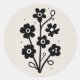 Black and White Floral Classic Round Sticker
