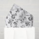 Pretty business branded tissue paper done in a white, grey and black French inspired floral toile pattern. A black text oval, on one end of the paper has white custom text ready to personalise for your business needs.