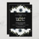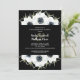 Invite guests to an engagement party with invitations featuring elegant watercolor black and white anemones blossoms on a black background. MATCHING ITEMS in our store.