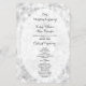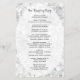 Blue and white hydrangea floral flat wedding program. Cheap, but beautiful paper, with custom black text on both sides over an oval transparent centre panel. Customise text on both sides with ceremony events and family / wedding party names.