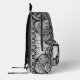 This black and white maximalist backpack features a rich tapestry of paisleys, florals, leaves, swirls, dots, and stripes, all hand-drawn into a garden of flowing, detailed linework. Inspired by ink illustration, the design offers a high-contrast look that’s both striking and wearable.
