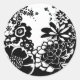 Black and White Floral Garden Graphic Pattern Classic Round Sticker