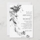 Elegant black and white floral garland QR code wedding Invitation. This elegant wedding invitation showcases a black and white floral garland, adding a touch of sophistication to your special day. The left side is adorned with the intricate floral design, while the classic typography brings a timeless charm to the overall look. For added convenience, the back of the invitation includes a QR code that allows guests to easily RSVP online. This modern twist on traditional wedding invitations makes it simple for your invitees to respond promptly and efficiently, ensuring that your celebration planning goes smoothly.