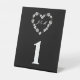 Black and White Floral Heart Wedding Table Number Pedestal Sign